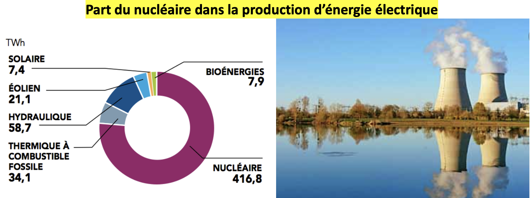 Le changement climatique nécessite de réduire la part carbone dans la production d’énergie électrique en éliminant tous les combustibles fossiles (charbon, pétrole et gaz naturel). Pourtant, comme nous l’avons écrit et répété dans de nombreux articles, l’électricité française est déjà décarbonée puisqu’elle est issue pour 3% seulement de combustibles fossiles, le reste provenant des centrales nucléaires (77%), des barrages hydro-électriques (12%) et d’un peu de bois, d’éolien et de photovoltaïque !