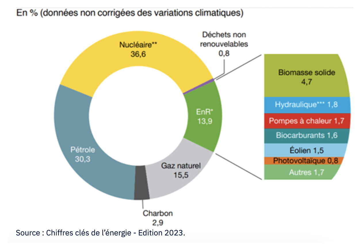 Répartition de la consommation d’énergie primaire en France en 2022 – source : BIG Média