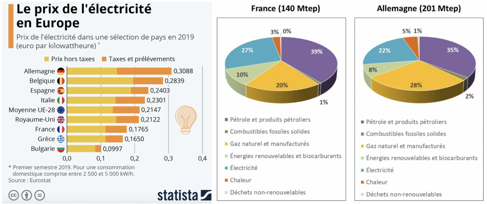 Le modèle allemand qui se reflète dans le coût de l’électricité – source : statista