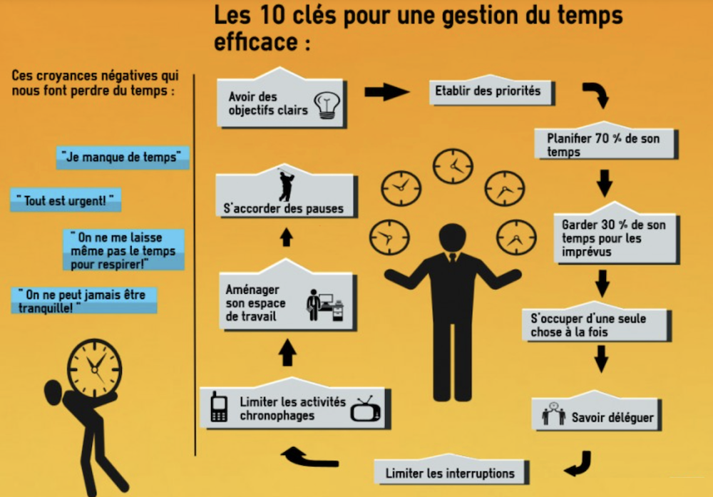 Mais ce sera toujours à la personne impliquée de prendre les décisions et d’assumer les responsabilités. Gérer et maîtriser le facteur temps n’a de sens qu’avec cette réserve fondamentale. La maîtrise du temps, le respect du calendrier et la sauvegarde de temps libre pour les imprévus passent par un « savoir-faire » dans gestion des priorités.