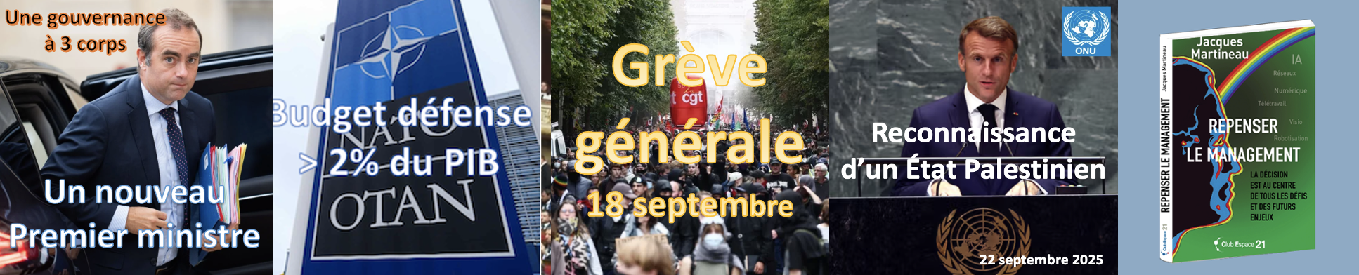 Pour vous informer Club Espace 21 peut être amené à commenter l’actualité ou un fait divers important. Un extrait de presse, une publication ou un livre d’auteur conduit parfois à un commentaire du Club.